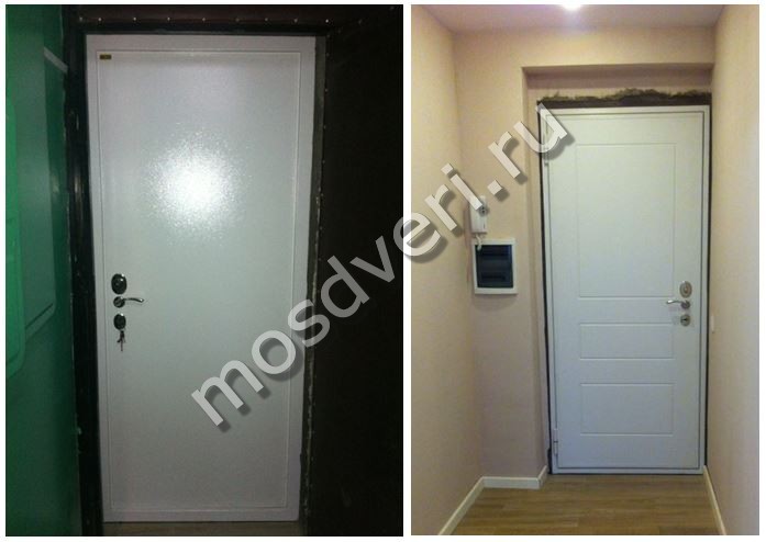 Образцы отделки белых входных металлических дверей в квартиру